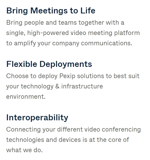 Pexip offers both self-hosted and as-a-service deployment options for enterprise video conferencing, built on the core Pexip Infinity technology.