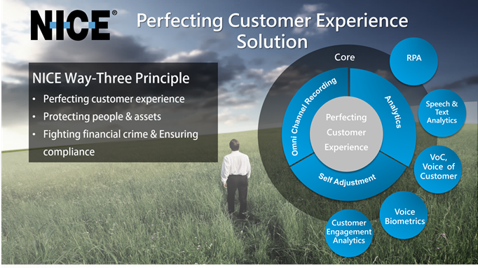 Perfecting Customer Experience - NICE enable organizations to deliver an effortless, consistent and personalized experience throughout the customer journey. NICE solutions allow enterprises to know their customers, act in real time and ensure that every employee is engaged. Customers stand out in their competitive markets by offering an enhanced customer experience, and they improve their bottom line by streamlining operational efficiency.