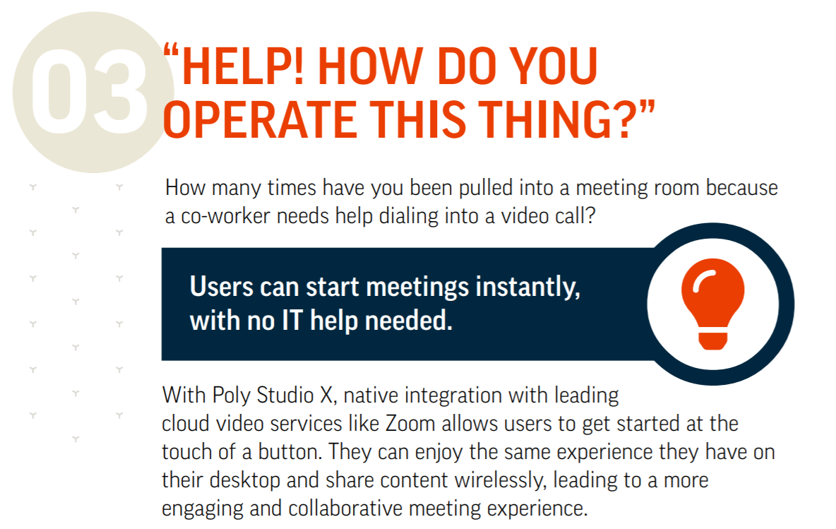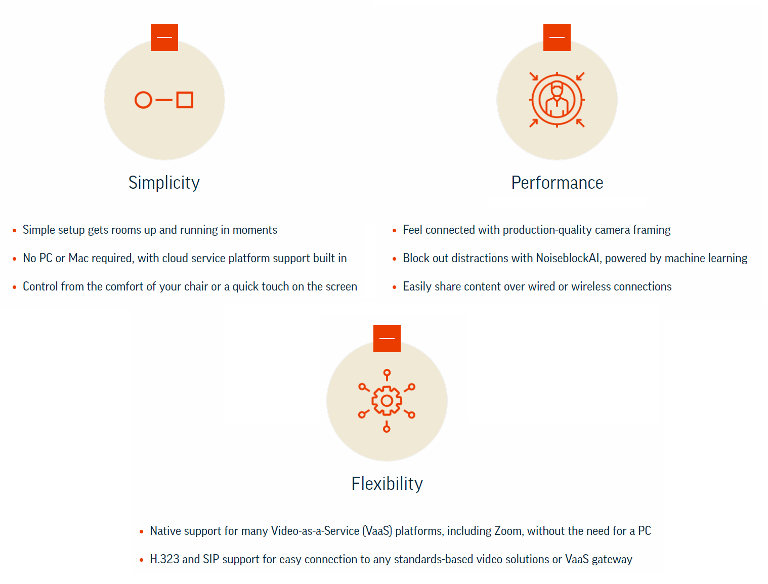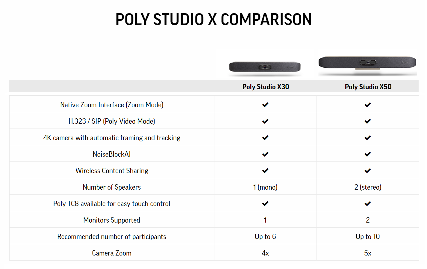 Poly Studio X video bars deliver radical simplicity in a single sleek device. Leave your PC or Mac at your desk. Then huddle in smaller rooms and connect easily in conference rooms—with nearly any video collaboration software, including Zoom.