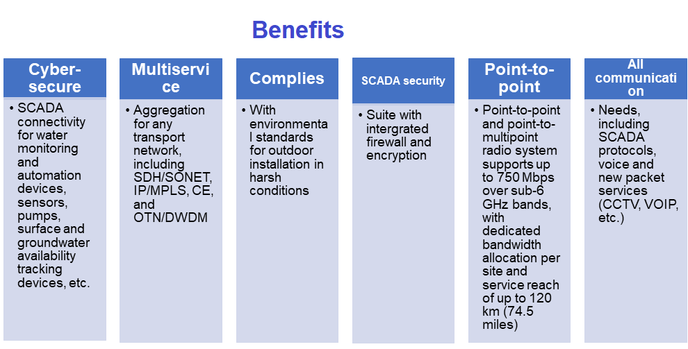 Cyber-secure SCADA connectivity for water monitoring and automation devices, sensors, pumps, surface, and groundwater availability tracking devices, etc.